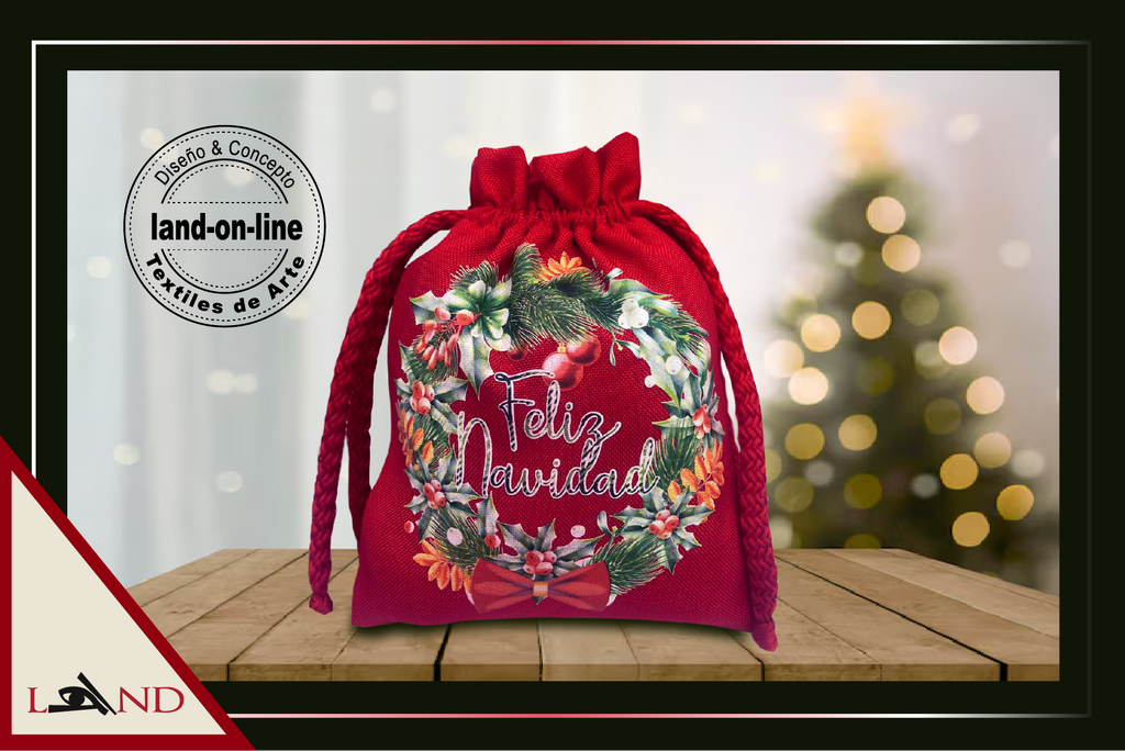 Linda funda de Navidad de tela personalizada con impresión a todo color en la parte frontal con tu marca o dedicatoria.