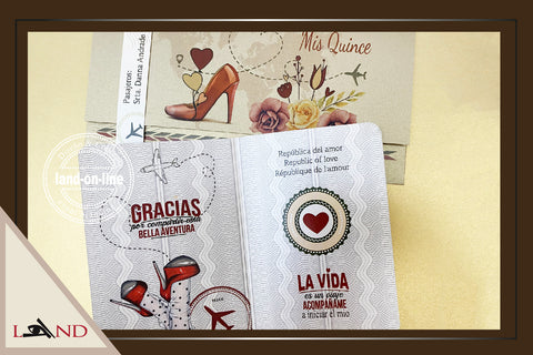 Ideal para bodas, aniversarios, cumpleaños, o cualquier ocasión especial con hermoso diseño de pasaporte y pasaje de avión con sobre contenedor y diseño de viaje para los amantes de lo exclusivo y original.
